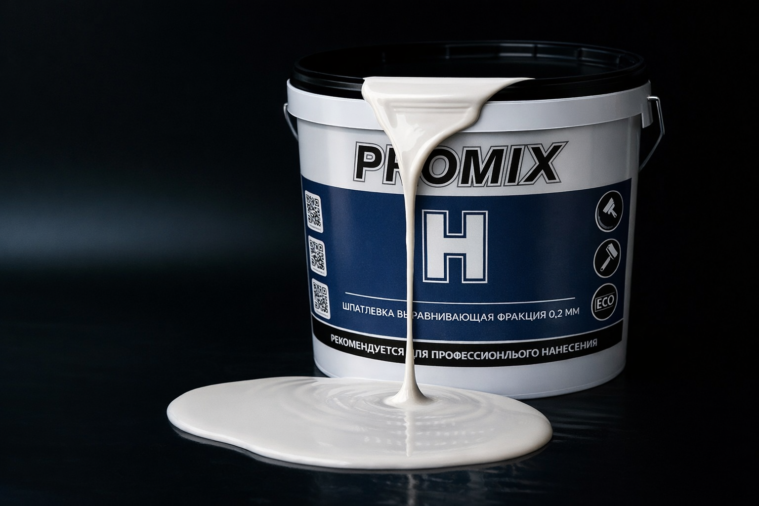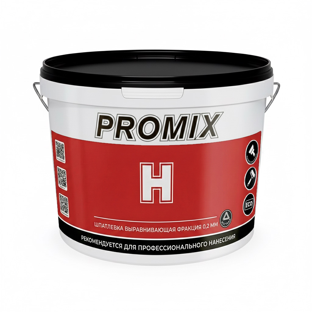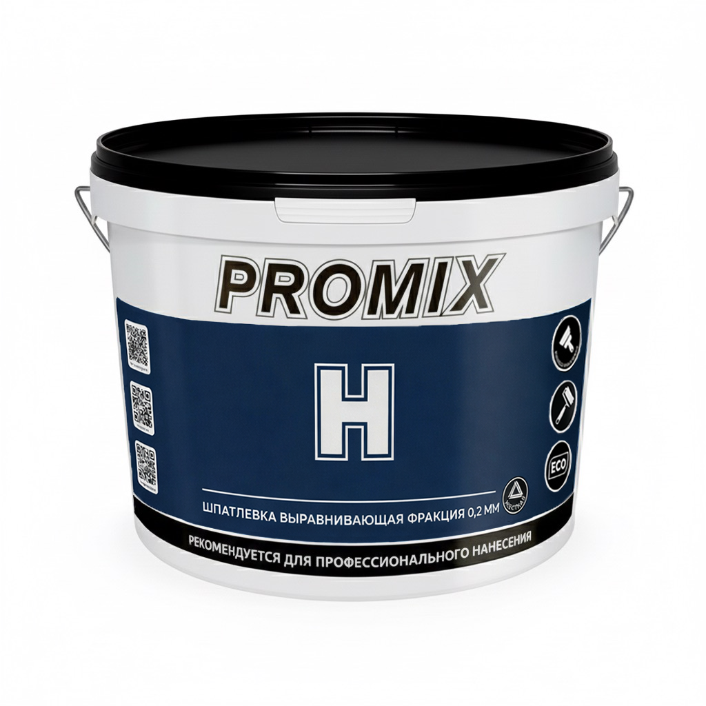 Шпатлевка выравнивающая PROMIX-H улучшенная предназначена для заделки повреждений, полостей и трещин, а также для выравнивания бетонных, оштукатуренных, гипсокартонных и других поверхностей.